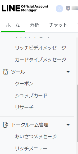 3.{ホーム}{トークルーム管理}{リッチメニュー}{リッチメニューを作成}の順でクリックする