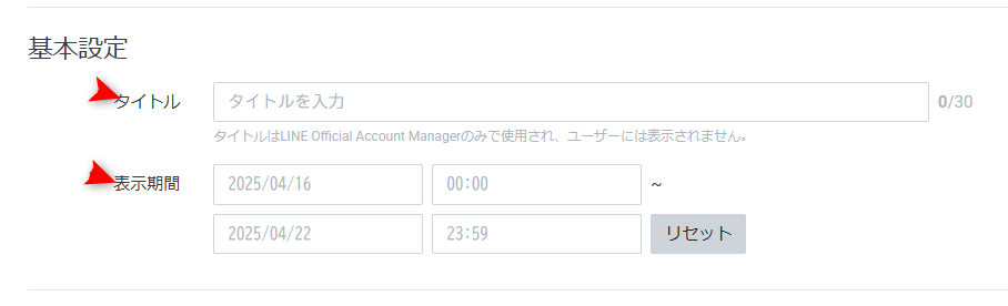 4.{基本設定}画面でタイトル・表示期間を入力する