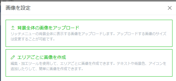 8.画像の設定ボタンを押し、{画像を設定}から{背景全体の画像をアップロード}または{エリアごとの画像を作成}のどちらかを選ぶ