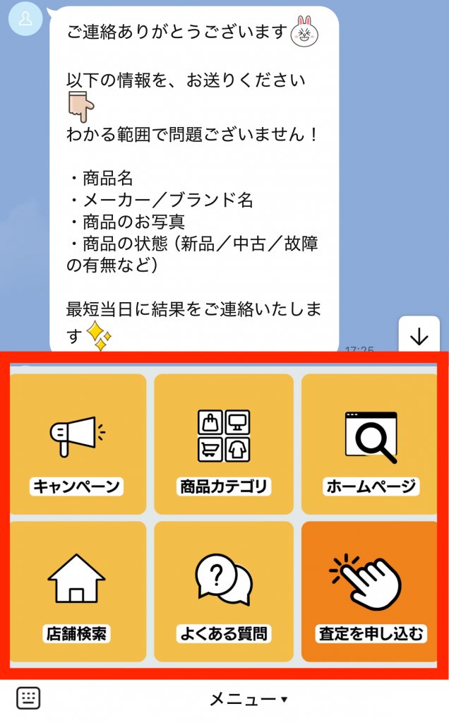 では、line公式アカウントのリッチメニューは何かというと、lineユーザーのトーク画面の下の方に表示される欄のことです。