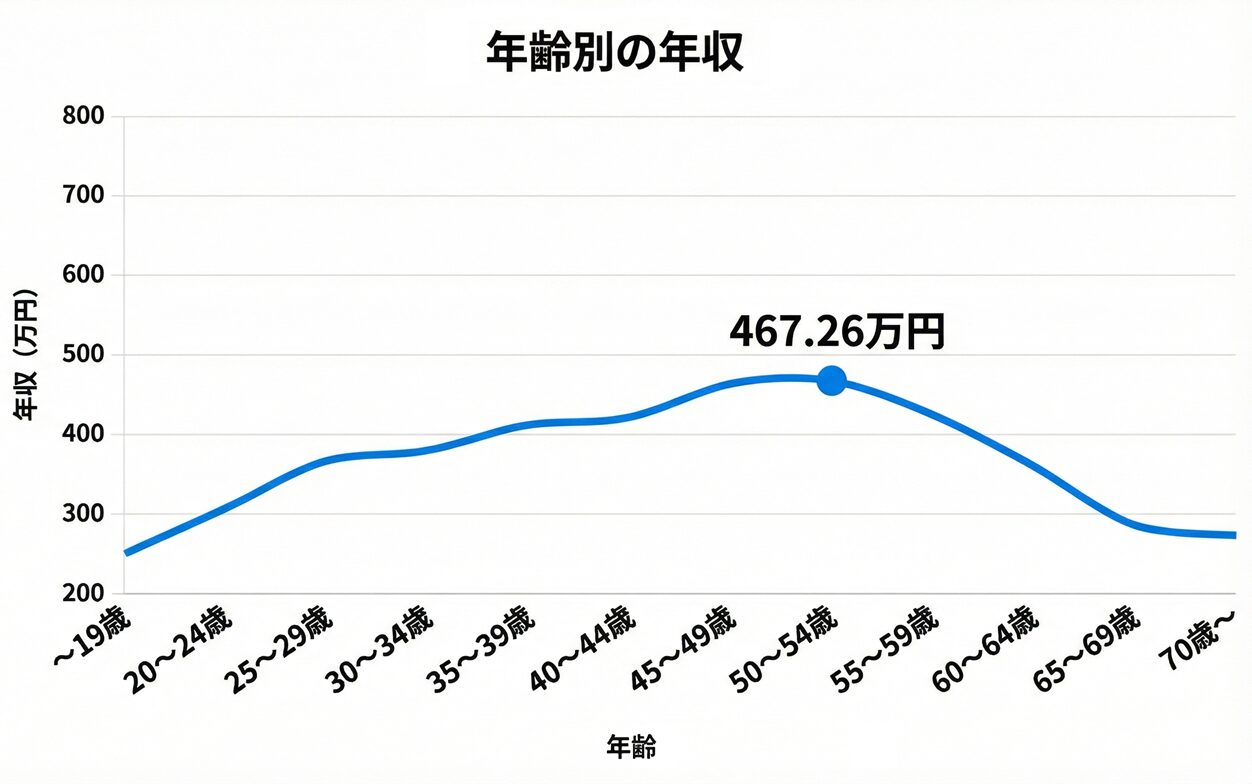 アロマセラピストを例に挙げて、世代別の平均年収も確認してみましょう。