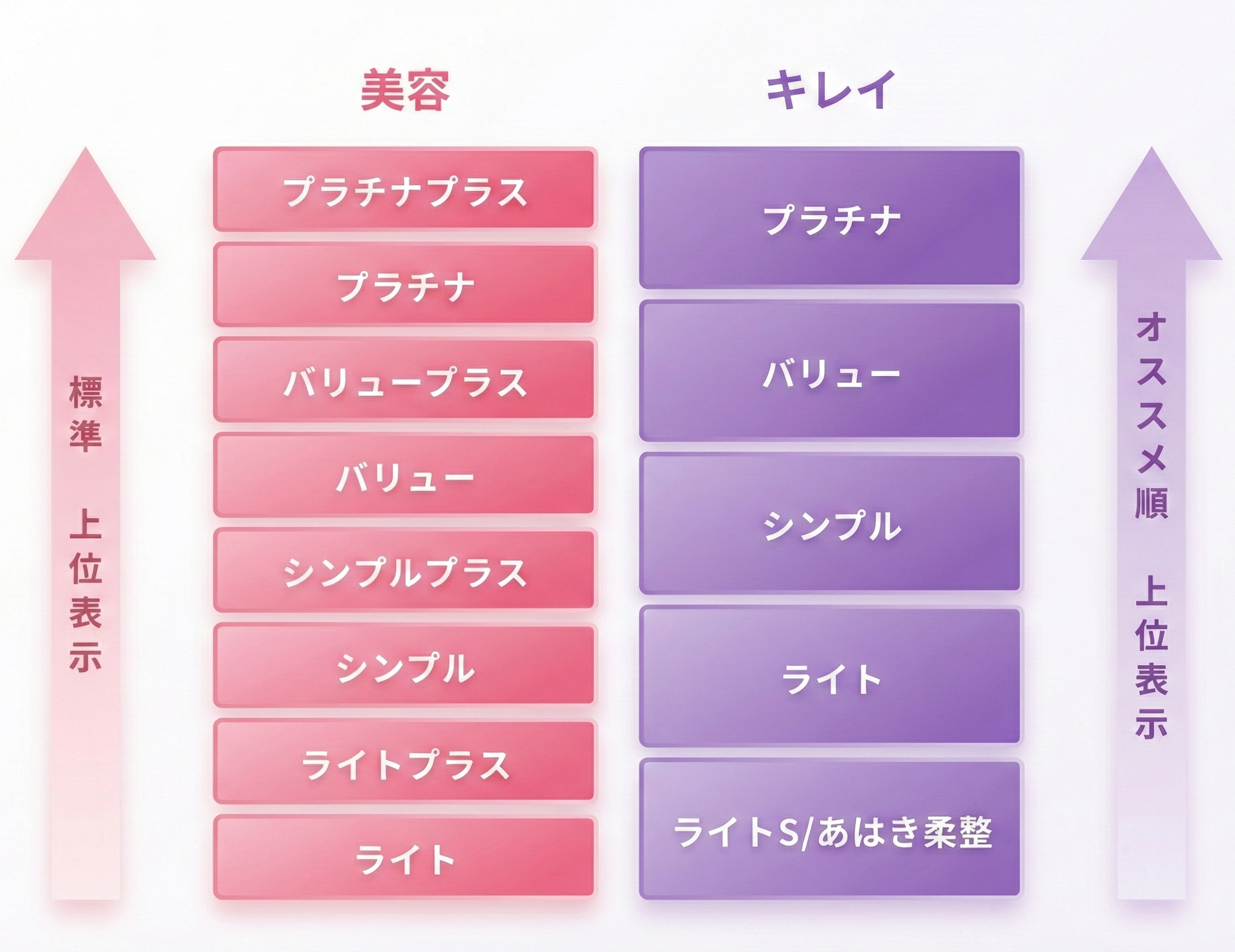 ホットペッパービューティーの掲載項目には、<美容>と<キレイ>があり、それぞれでプラン構成が異なっています。