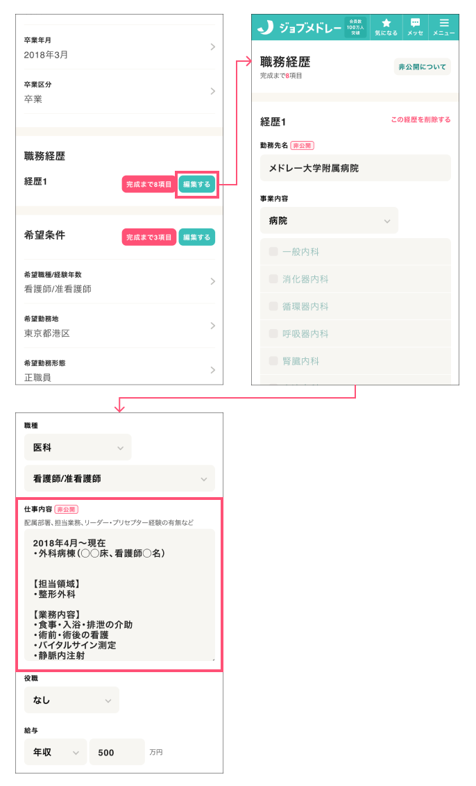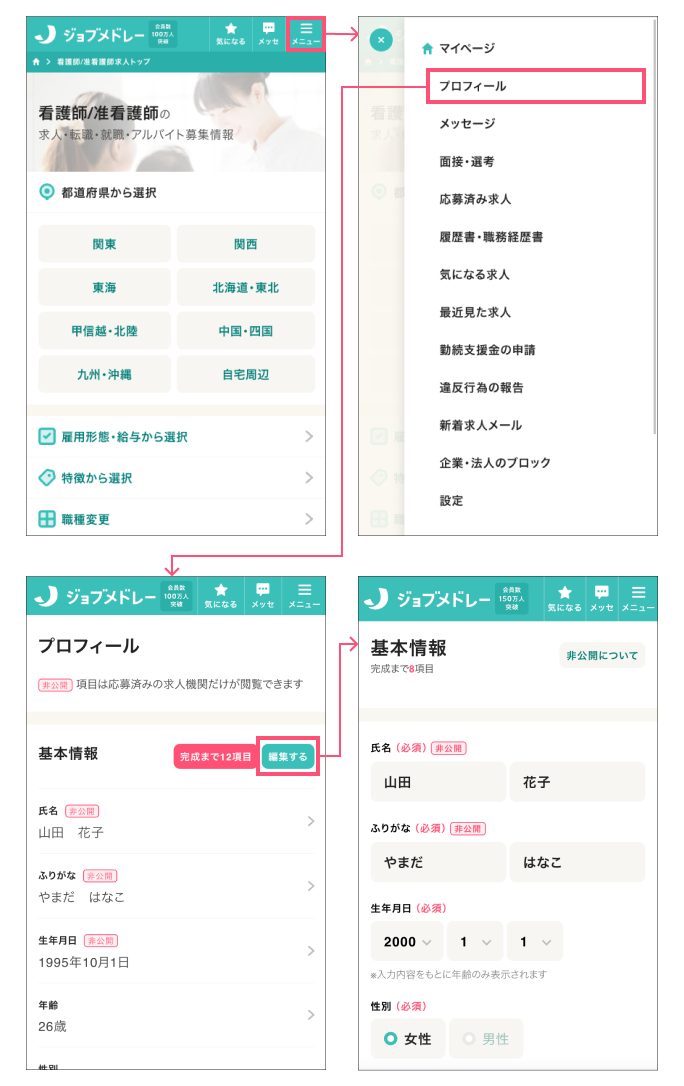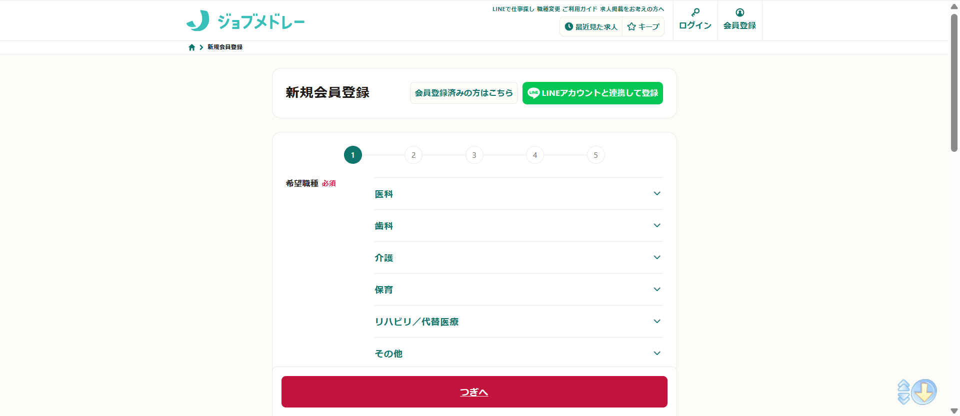 ここまではジョブメドレーへの新規会員登録とプロフィールの登録手順でした。