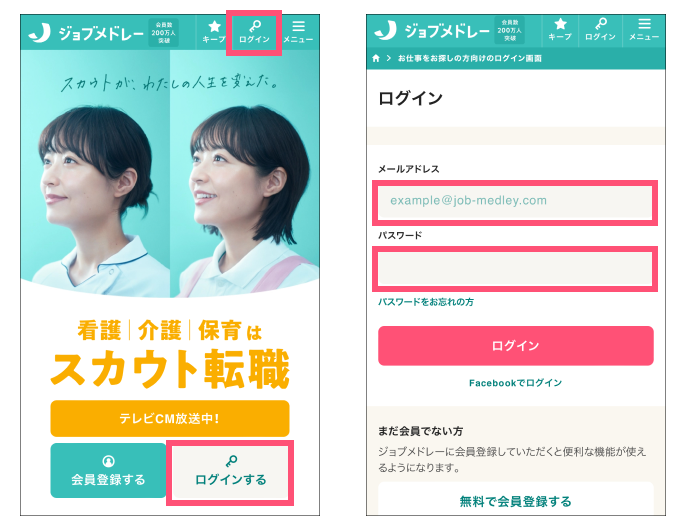 1の画像引用元:ジョブメドレー新規利用者登録 |