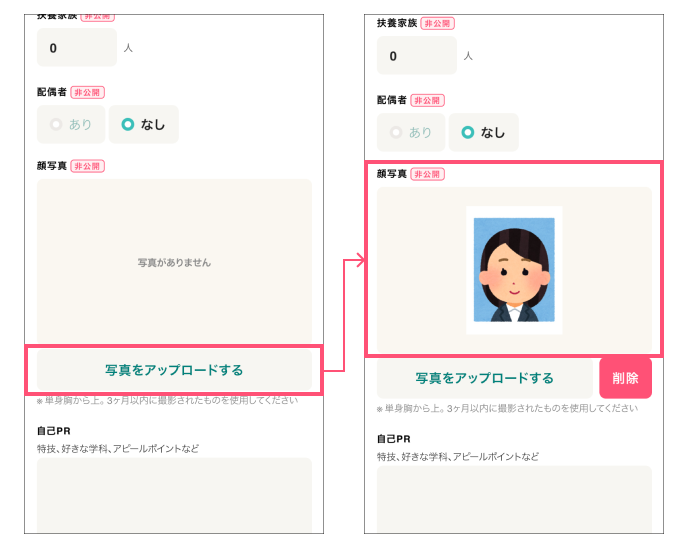 6・顔写真を設定するには<写真をアップロードする>ボタンを押す