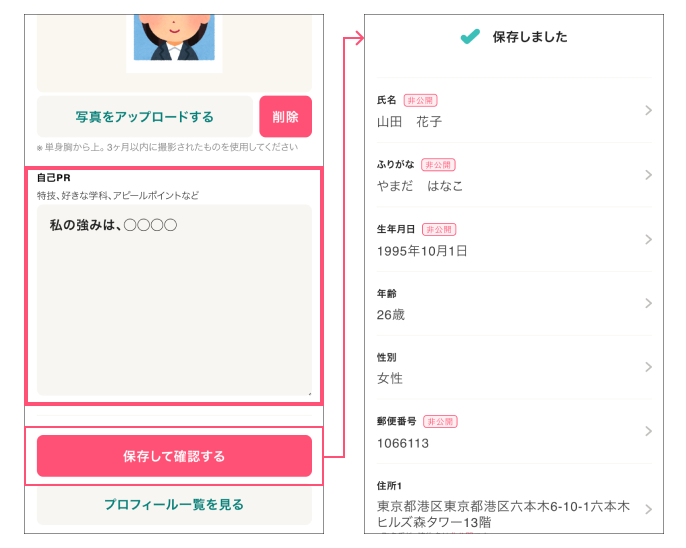 7・<自己PR>を入力して、<保存して確認する>ボタンを押す