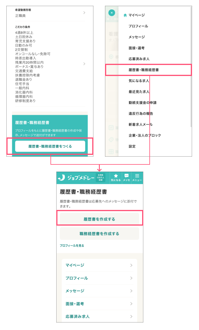 2以降の画像引用元:ジョブメドレーに登録したら最初にやる7つのこと 履歴書・職務経歴書の作り方、印刷や応募方法も解説 | なるほど!ジョブメドレー