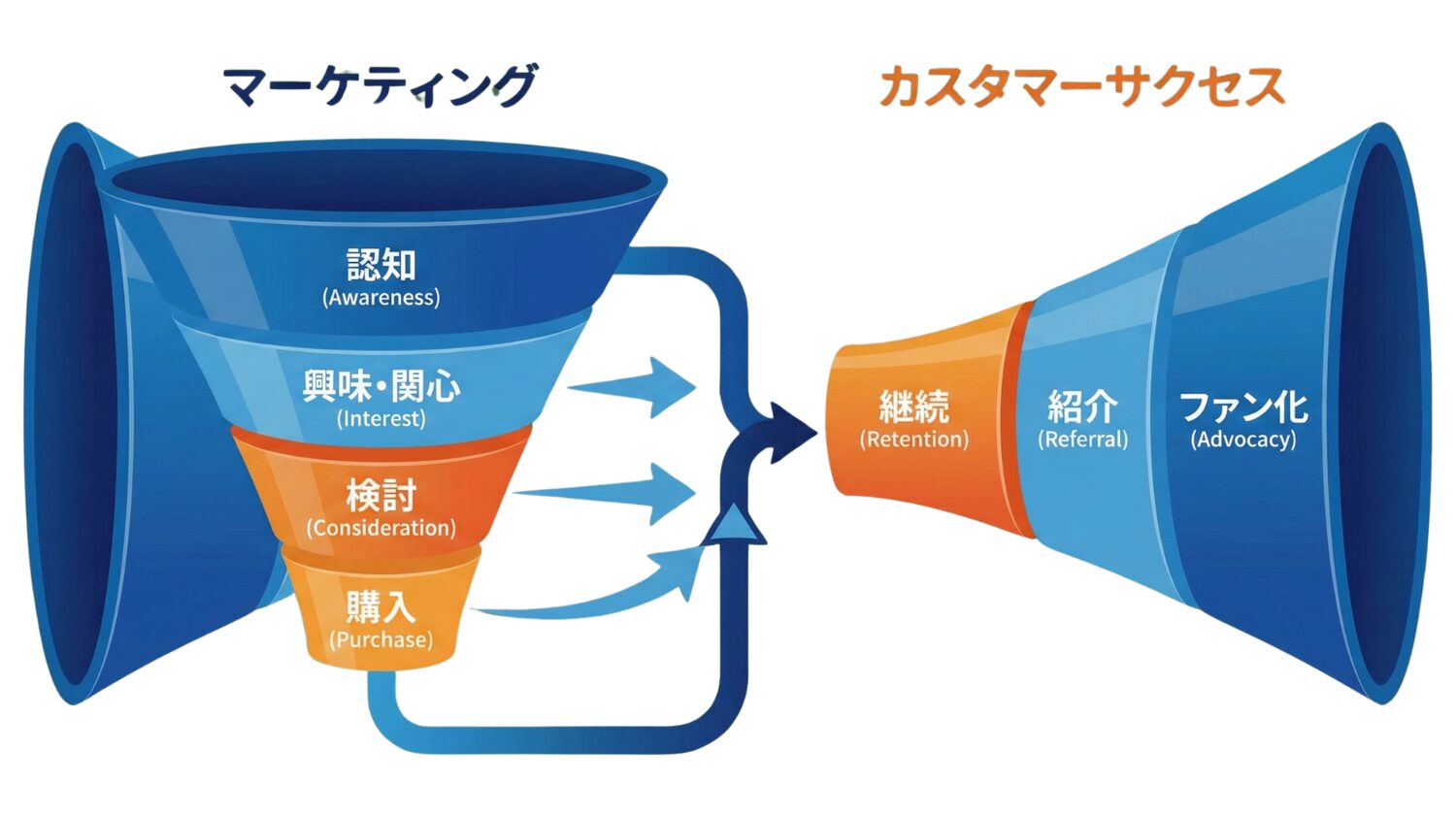 顧客の製品やサービス購入からその後のアクションまで俯瞰的に分析できる<ダブルファネル>では、契約後のステージに応じた包括的なアプローチが可能になります。